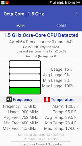 درجة حرارة وحدة المعالجة المركزية غير متوفرة على جميع الأجهزة. إذا كان لديك أي مشاكل، يرجى الاتصال بنا على support@pocketappbuilders.com