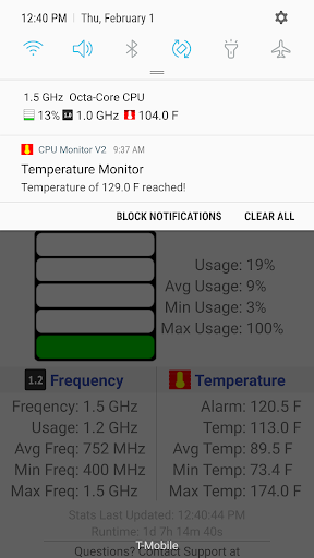 * إخطار StatusBar بدرجة حرارة وحدة المعالجة المركزية