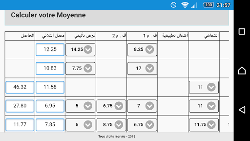 Cette application est dédié pour tous les élèves, et pour tous qui veulent calculer la moyenne scolaire, elle contient toutes les bulletins scolaire, avec les tableaux de matières et leurs coefficients. Bonne réussite a tous.