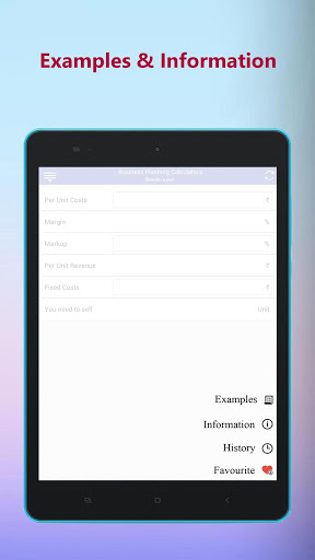 This App also helps you with Business Planning Calculators, Interest Calculator, Online Marketing Calculators, Sales Calculators, Finance Calculators and lots of other Business Calculators to assist you in every possible way.