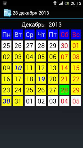 Добавлены настройки отображения первого дня недели (Пн/Вс)