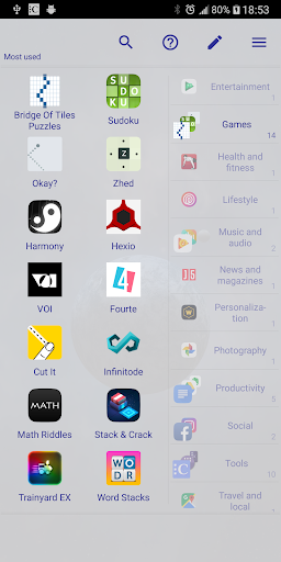 • Automatically categorize your existing and new installed apps