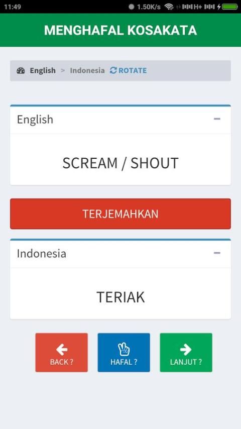 Aplikasi يانغ dibuat untuk mempermudah الدلم menghafal كوسا كاتا البهاسا inggris