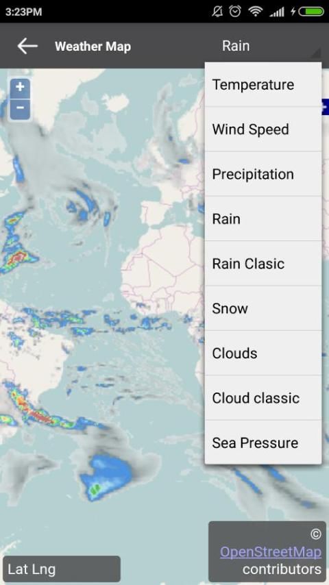 - 9 طبقات الخريطة (درجة الحرارة وسرعة الرياح والأمطار والمطر، المطر معاكم اخر اصدارات، الثلج، غيمة، غيمة معاكم اخر اصدارات، الضغط البحر)