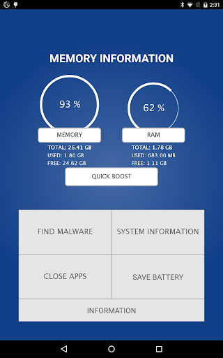 تطبيق Clean & Boost Optimizer Toolهو التطبيق الرائد في تحسين وتسريع ذاكرة وأداء أجهزة أندرويد وحمايتها. يقوم Clean & Boost Optimizer Tool بتنظيف الذاكرة والتخزين المؤقت للملفات التي تبطئ جهاز أندرويد. ويحسّن أيضًا الذاكرة ويزيد سرعة جهازك ببساطة عبر التخلص من الملفات غير المهمة والملفات المزعجة. هذا التطبيق سهل الاستخدام وفعّال ومجاني وآمن. كما يحمي المكون الإضافي – Clean & Boost هاتفك الجوال من الفيروسات وأحصنة طروادة والبرامج الخبيثة. كما يساعدك موفّر البطارية مجاني الاستخدام على إدارة والتحكم في استخدام بطاريتك ومن ثَم إطالة عمرها