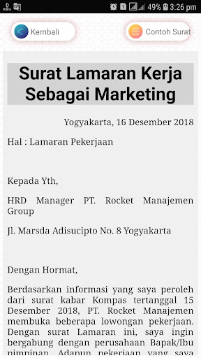 هذا الوصف ل Contoh Surat Lamaran Pekerjaan
