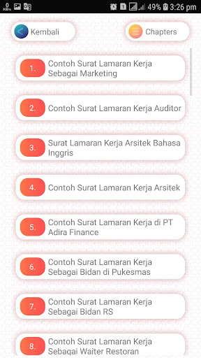 Dijamin, kamu bakalan dapet banyak contoh surat lamaran pekerjaan dari berbagai bidang yang bisa kamu jadikan referensi untuk menulis surat lamaran. Cukup download dan install saja aplikasi ini di smartphone kamu.