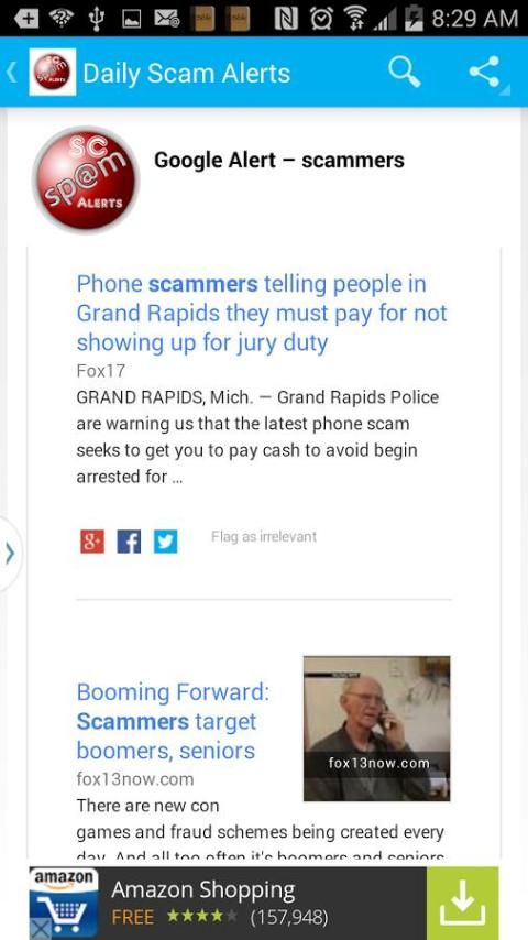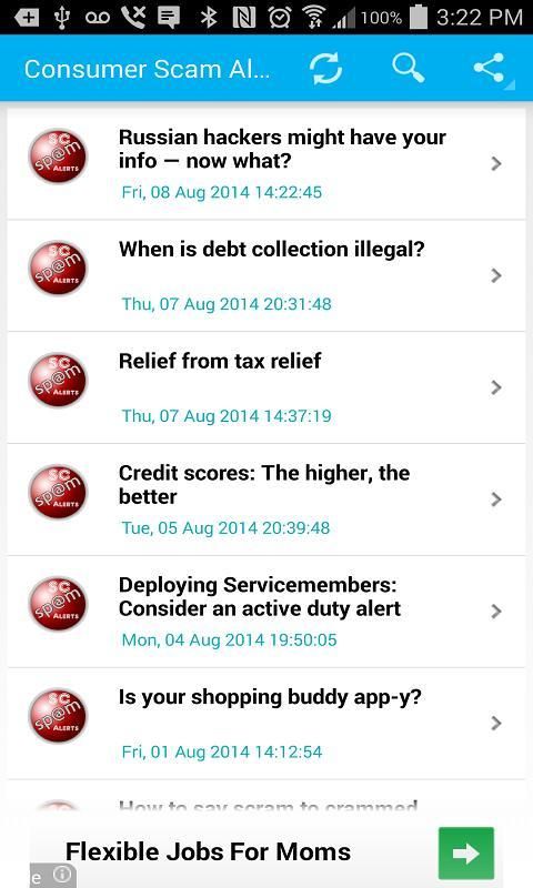 هناك أخبار لك لمعرفة اكثر عن افضل تطبيقات اندرويد 20,000+ مستحدمين يحملون Daily Scam Alerts احدث الاصدار مجانا كل أسبوع في ان هذا التطبيق ممتعة للغاية ..9Apps هذه التطبيق الحلوووه تصدر في 2017-09-18 بالإضافة إلى ذلك،يمكنك تختار التطبيقات الرائجة الأخرى هنا!.