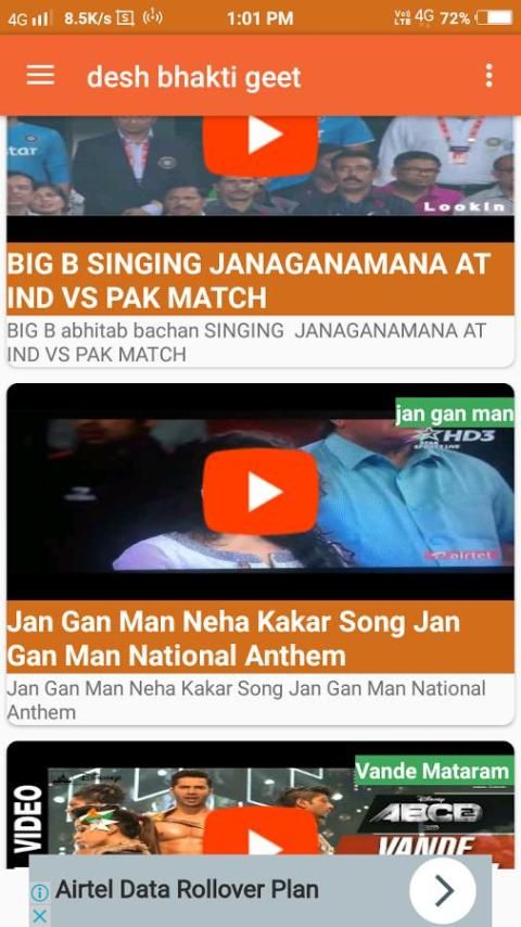ديش بهاكتى جيت التطبيق مفيد جدا في الحياة اليوم مشغول، ونحن جميعا نريد لتعليم chlidrens عن بلدنا، والأمة، وأيضا عن الحرية محاربة هذه التطبيقات هي عبارة عن مجموعة من vairous الوطنية الأغاني وأشرطة الفيديو التي هي مفيدة جدا لتذكر الجندي لدينا وفي freedomfighter في كل لحظة، ليس فقط على 15 أغسطس و 26 يناير للجميع.