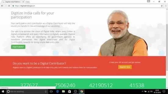 Our aim is to achieve the vision of Digital India, where every Indian is digitally empowered and every information is digitally available. Digitize India Platform offers an opportunity for government agencies to transform themselves into digital enterprises and for Digital Contributors, rewards for doing simple data entry jobs.