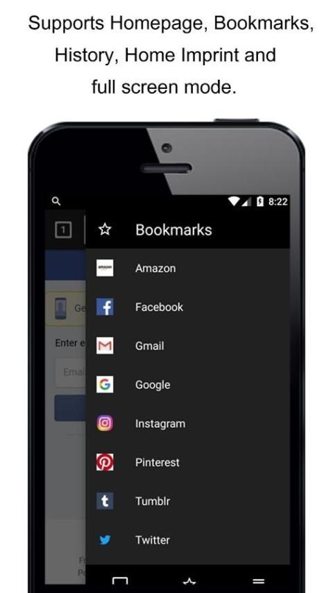 - يدعم موقعه، والإشارات المرجعية، والتاريخ، وآثار الصغيرة ووضع ملء الشاشة.