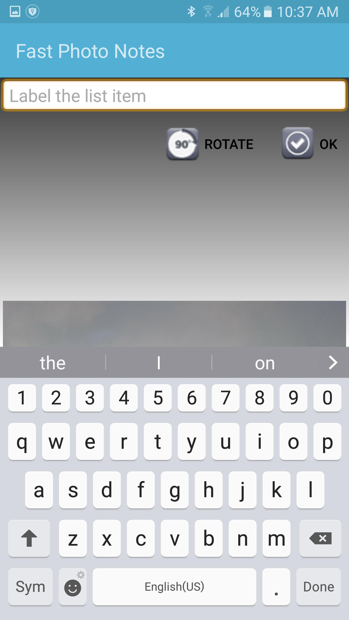 Fast Photo Notes allows you to attach notes to photos taken with the app or existing photos in the gallery and add them to a list.