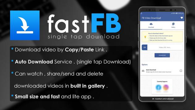 هذا الوصف ل FastFB Downloader for facebook video downloader HD