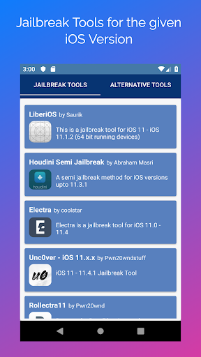 If the selected iOS version is jailbreakable, the app displays the available jailbreak tools and ways to download Cydia. If no jailbreak tools available, it will display the jailbreak alternative tools to download and install Cydia, Sileo and other jailbreak tools.