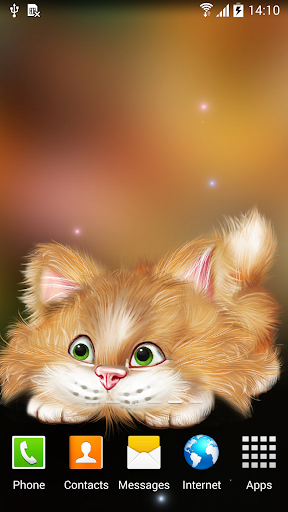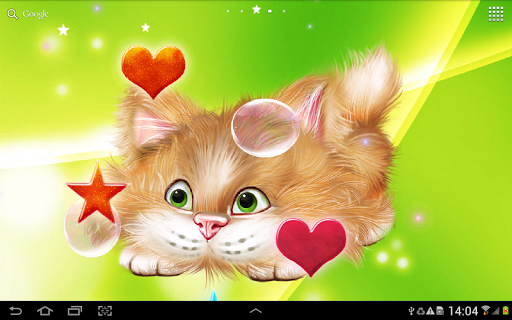 Funny Cat Live Wallpaper - beautiful free live wallpaper with a pretty cute animated kitten. With animated flying hearts and stars that respond to touch, soap bubbles that can be burst by touch, set of abstract backgrounds, animated fireflies, lights and much more.