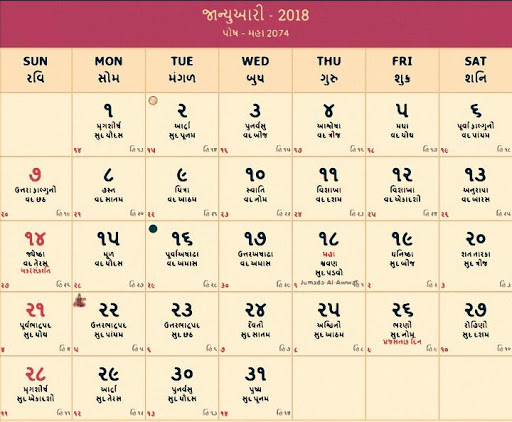 Gujrati Calendar 2018 and 2017, 2016