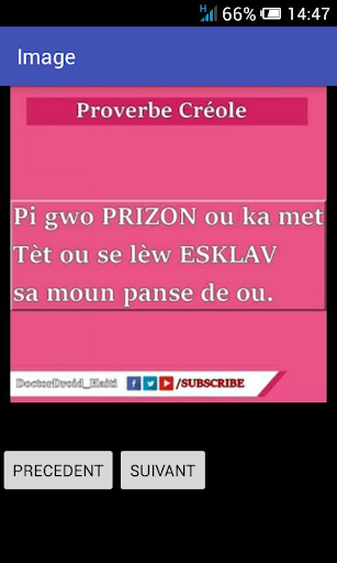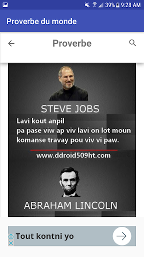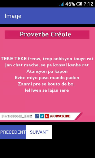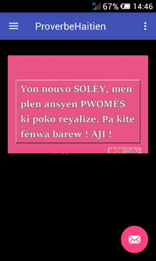 All the proverbs and sayings Haitians, find all the most popular Haitian proverbs in several formats: TEXT, IMAGE, VIDEO, The Application also incorporates a SHARE button that allows the sharing of your favorite proverbs to several of your friends on the networks social. VISIT the official FACEBOOK page of the App : PROVERBE HAITIEN