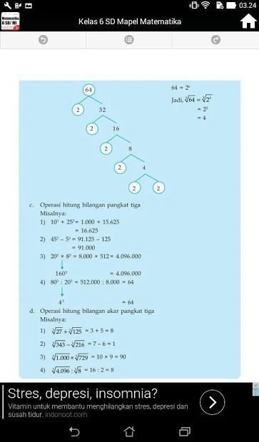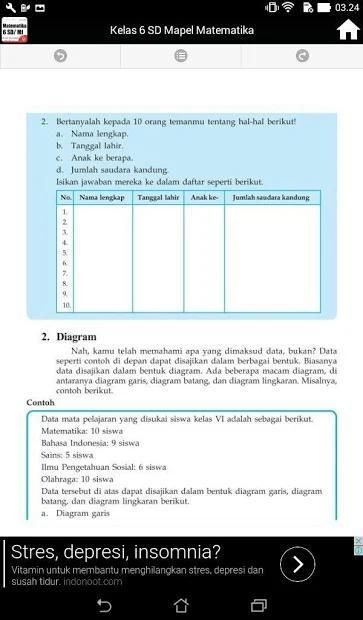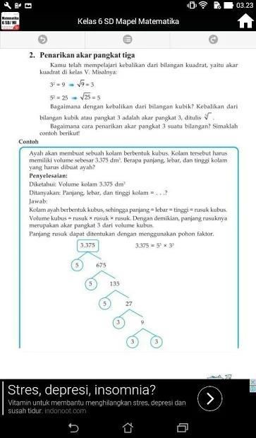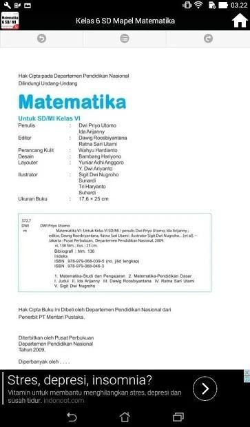 BSE (Electronic School Book) Mathematics for Elementary School / MI Grade 6 is a module in materials text book lesson is a textbook which has done an assessment by the National Education Standards and has been designated as textbooks that meet the eligibility requirements that can be used as learning guidelines. Digital school books provided by the government, Loading general knowledge of elementary subjects, exam, exam including retraining primary school daily, weekly, half and half term, the end of the semester and grade.