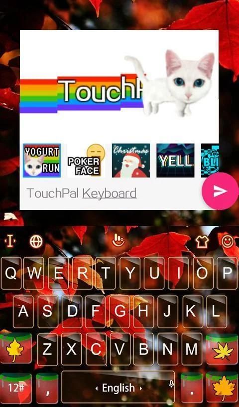 - لتنشيط الجديدة TouchPal مجانية أواخر الخريف موضوع تعبيري عن لوحة المفاتيح، تحتاج TouchPal رموز تعبيرية لوحة المفاتيح 5.6.8.5 أو أعلاه، الذي يتم اختياره من قبل أكثر من 500 مليون شخص في جميع أنحاء العالم.