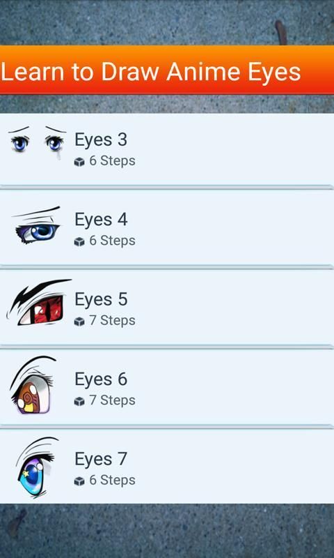 هذه التطبيقات هي خطوة خطوة تعليمات التي سوف يعلمك تعلم كيفية رسم العيون أنيمي. مثل مدرس فن الشخصية، وسوف يعلمك كيفية رسم رسومات (خطوة خطوة) من صور مختلفة. وهو يشتمل على مجموعة كبيرة من الرسومات مصنفة حسب مستوى الصعوبة.