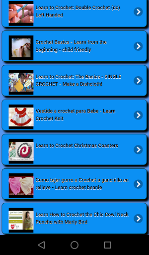 Learn how to make quick and easy crochet with this app. Simple tutorial videos for beginners. You will find patterns for crochet of socks, crochet of handles, crochet of hats scarves, crochet of blankets for children, crochet of booties for children, crochet of bags, crochet of sweaters, crochet of ponchos and crochet of flowers.