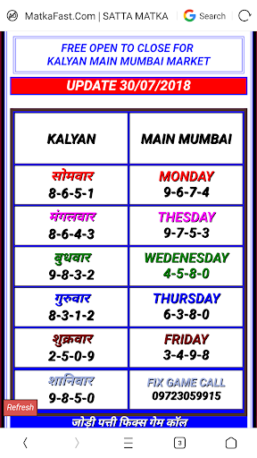KALYAN RESULT | MATKA CHARTS | FIX MATKA TIPS