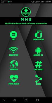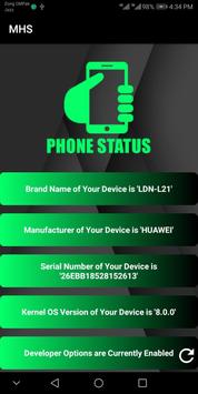 MHS app Showing all mobile information on a single platform. You can check your mobile software and hardware information (software version, Phone name, Brand name, Network connection, Battery health, your Phone storage, Mobile Connection and Rooted Device).