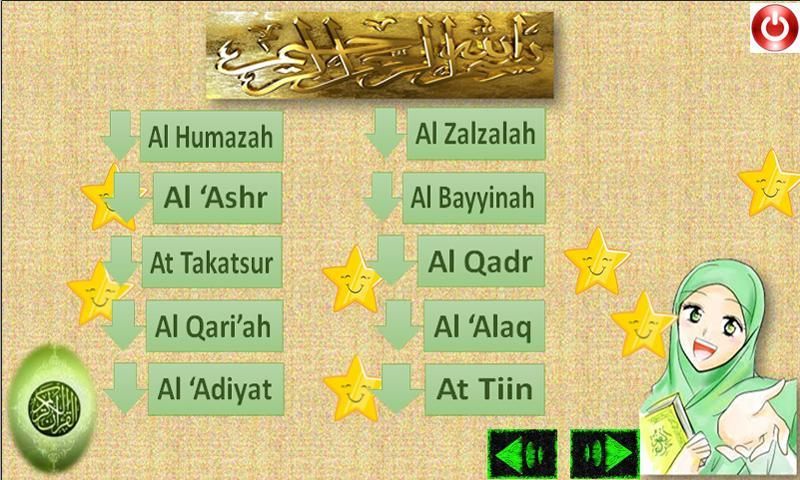 تطبيقات التعليم جزء عم جاء به محمد Thoha آل - جنيد. في هذا القسم يحتوي على 20 حرف. هي معبأة الكتابة العربية مع مجموعة متنوعة من التصاميم حتى لا يشعر بالملل الأطفال والتعب أثناء الدراسة، ومجهزة صوت ستيريو أفضل مما يسهل على المستخدمين للتعلم، وتأتي مجهزة لطيف الرسوم المتحركة ومثيرة للاهتمام.