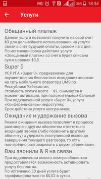 Bu ilova UMS O`zbekiston aloqa operatori abonenetlari uchun mo`ljallangan. Ilovada internet, SMS va minutli paketlarni USSD kodlarni eslab qolmagan holda xarid qilish imkoniyati mavjud. Bundan tashqari ilova yordamida tarif rejalarini boshqarish, ular haqida qisqacha ma'lumot olish va kompaniya yangiliklaridan habardor bo`lib turish mumkin.
