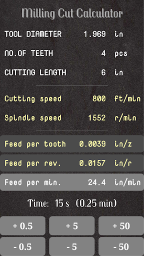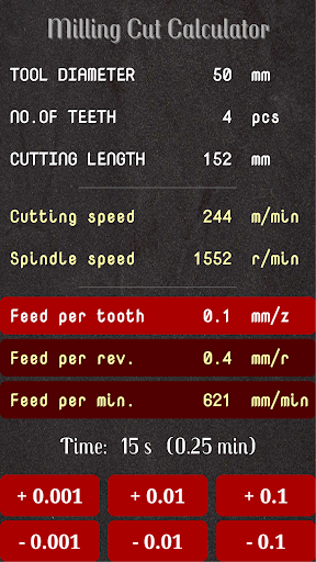 لمزيد من العمليات الحسابية الخاصة بالمخرطة ، يمكنك تنزيل & quot ؛ تحويل الآلة الحاسبة & quot ؛أو الممتد & quot ؛ quot cut calculator ii & quot ؛ ، كلاهما مصنوع من Kenke.