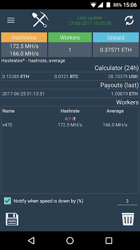 مشاهدة منصات التعدين الخاصة بك من هاتفك المحمول. يوضح هذا التطبيق السرعة والتوازن والكثير من المعلومات المختلفة. مع وظيفة الإعلام، سوف تعرف دائما عن تعدين المشكلات.