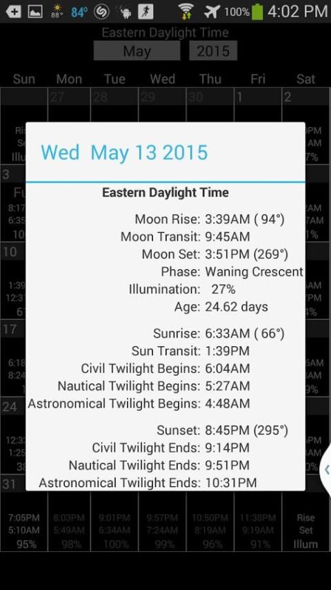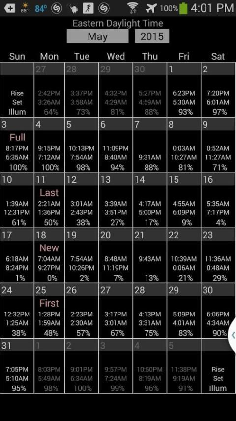 يعرض هذا التطبيق على مراحل القمر تعديل لبالتوقيت المحلي الحالي (ويضبط التوقيت الصيفي للتواريخ التي تحتاج إليها). لذلك قد تلاحظ المراحل ليست هي نفسها التي من التقاويم المطبوعة، أو التقويمات الأخرى التي لا ضبط بالتوقيت المحلي، حيث أن معظم التقاويم تظهر فقط في مرحلة لتوقيت غرينتش.