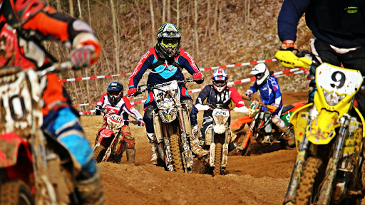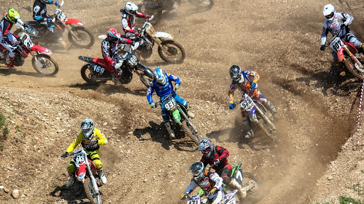 Motocross (or MX) is the direct equivalent of road racing, but off road, a number of bikes racing on a closed circuit. Motocross circuits are constructed on a variety of non-tarmac surfaces such as dirt, sand, mud, grass, etc., and tend to incorporate elevation changes either natural or artificial.
