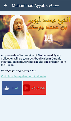 كل العائدات من بيع المجموعة الكاملة للشيخ محمد أيوب ستعطي الى معهد عبد الحليم للدراسات القرآنية معهد للكبار والصغار