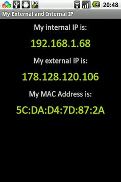 Find out fast and easy your IP addresses! This app shows you the internal and external ip, also your mac address! You can refresh the values at any time with the refresh menu button! Very easy to use! Enjoy!