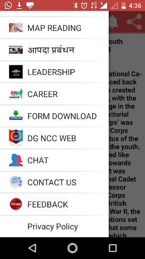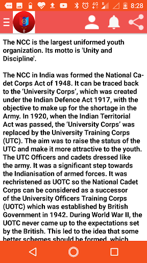 This application use for student of NCC , it is very use full application . It use all NCC student for online study . In this application in NCC song , drill class, aap reading class and oter class
