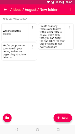 Create text notes very quickly and organize them with as many folders and subfolders as you need!