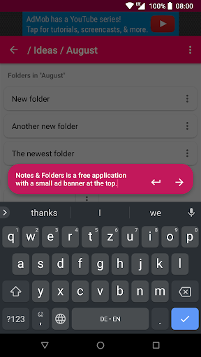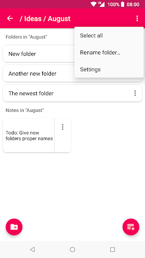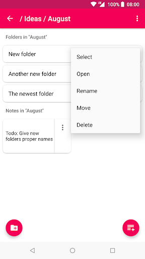 Edit folders and notes later on, select and delete multiple objects at once and even move objects from one folder to another.