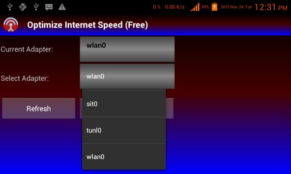 This application will help you improve your download and browsing speed on your android device, also we gave you the advantage to select different adapters for example (wlan0,lo,etc....), and its safe to use this application.
