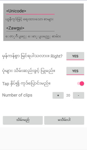 - မိမိ ရိုက်ထားသည့် စာ (သို့) ကူးယူထားသည့် စာကို ယူနီကုတ်နှင့် ဇော်ဂျီ နှစ်မျိုးစလုံး တွဲပြလိုက ပြနိုင်သည်။