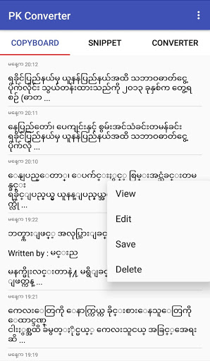- ထို ကူးယူထားသော စာများတွင်မှ နောင်အခါ ပြန်သုံးနိုင်ရန် စိတ်ကြိုက် ထပ်မံ သိမ်းယူထားနိုင်သည်။ အကန့်အသတ် မထားရှိပါ။ Snippet တွင် ကြည့်ပါ။