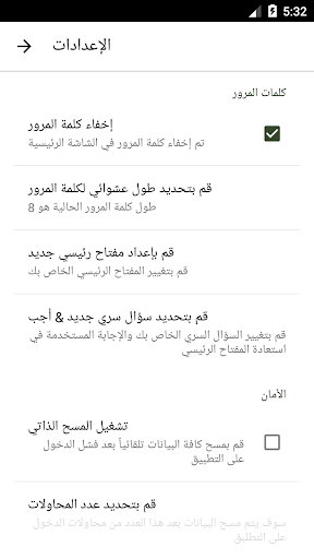 وقد تم تصميم واجهة المستخدم بالكامل لهذا التطبيق كلمة السر مدير ل سرعة وسهولة إدخال البيانات واسترجاعها.