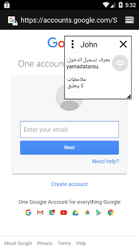 كما يضمPassword Locker عائمة فريدة من نوعها ميزة نافذة لنقل البيانات بسهولة عبر تطبيقات على الأجهزة النقالة . باستخدام هذه الميزة المنبثقة، و حجز تذاكر الجو أو ملء استمارات عبر الإنترنت من خلال جهاز الجوال الخاص بك لا يمكن أن يكون أسهل من ذلك!
