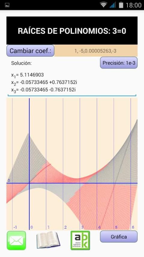 Además, se dibuja la gráfica, tanto en el ámbito real como en el imaginario