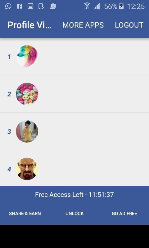 هذا appwill تظهر الأولي 10 مستخدمين مجانا ،، ثم توجيه الاتهام لعدد أكبر من المستخدمين. الملف الوقت VisitorsFbookishavingFastloading، على نحو سلس experiencewith المستخدم الميزات الحصرية. Wekeepupdatingevery الوقت لخدمة شيء جديد. أنا hopeitwill انهاء مفاجأة لكم !!