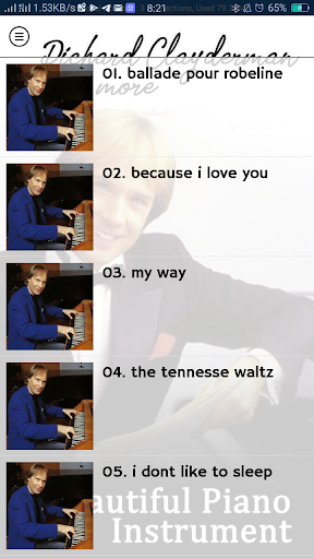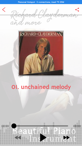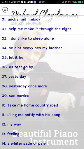 هذا التطبيق هو لأولئك منكم الذين يرغبون في الاستمتاع بالموسيقى حتى بدون شعر. والأداة الموسيقية الجميلة للبيانو لعبت من قبل مايسترو ريتشارد كليندرمان الذين لم يشكوا في قدراته.