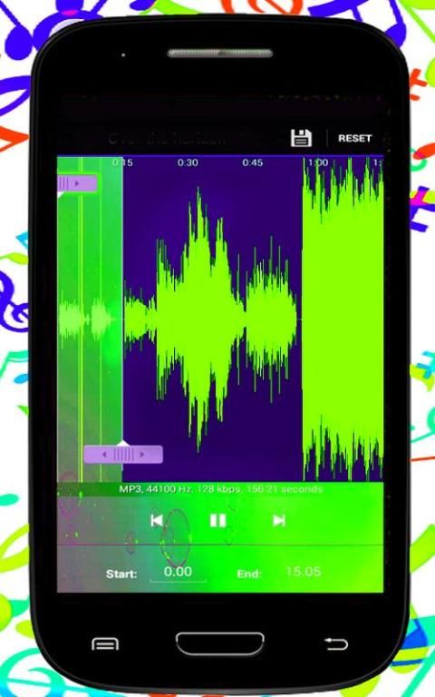 - Choose your start and end area of your future ringtone;