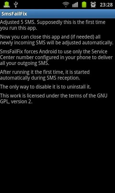 كل هذا التطبيق لا هو واضح في المعلومات إشكالية تخزينها في قاعدة البيانات SMS التي يمكن أن تؤدي إلى تجاوز رقم مركز الخدمة. فإنه يضمن لك الا ان عدد مركز خدمة تكوينها في هاتفك وسوف تستخدم لإرسال SMS. هذا يبدو أكثر أمانا بغض النظر عما إذا كان لديك أي وقت مضى فشل تسليم الرسائل القصيرة أو لا.
