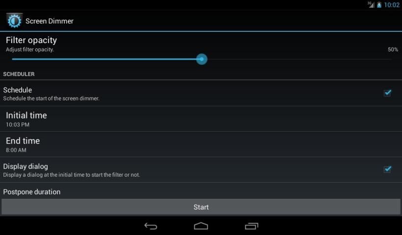 الشاشة باهتة تمكنك من خفض سطوع الهاتف أو الجهاز اللوحي أكثر مما يمكنك القيام به بشكل افتراضي من أجل تجنب صداع وألم في العين في بيئة مظلمة أو في الليل. إذا كنت تملك شاشة AMOLED، وهذا التطبيق حتى ينقذ البطارية لأن بكسل سوداء تتحول في الواقع قبالة على
