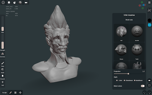 Sculpt عبارة عن تطبيق رقمي للنحت والطلاء ، مصمم لجلب تجربة النحت إلى هاتفك الذكي أو الجهاز اللوحي.تراكم ، ناعم ، قناع ، تضخيم ، تحرك ، تقليم ، تسطيح ، سحب ، قرصة ، تجعد ، تقليم ديناميكية ، ديناميكية ، ختم أكثر.